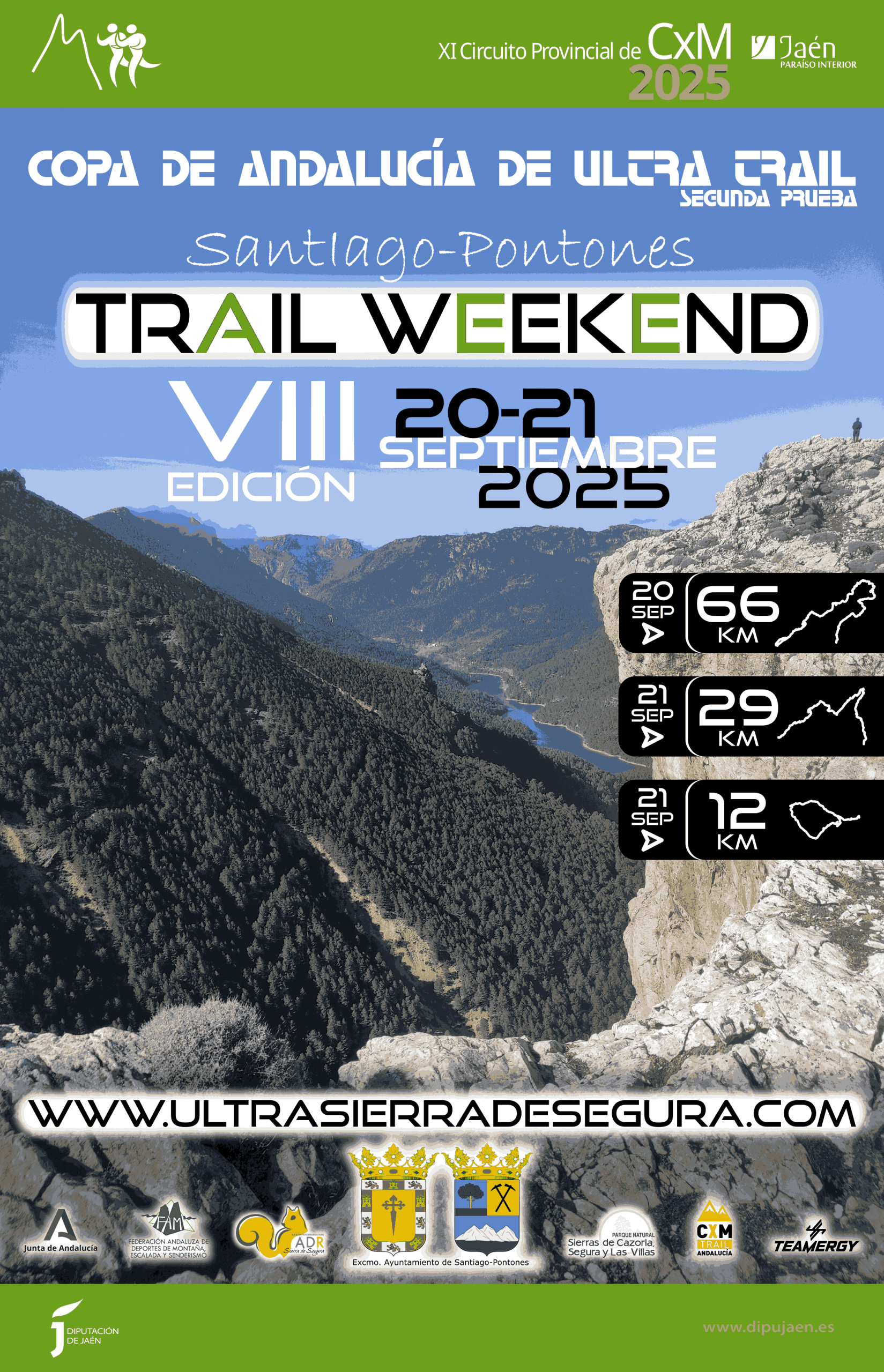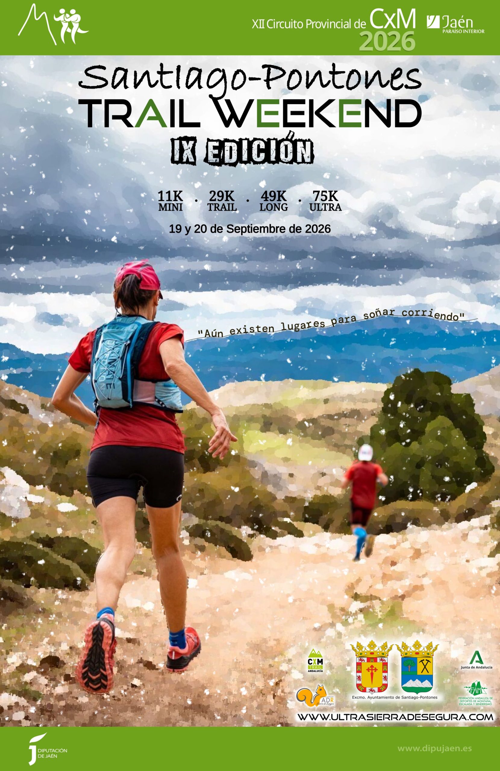 Santiago-Pontones Trail Weekend es mucho más que una carrera de montaña, es una experiencia inolvidable en uno de los parajes naturales más impresionantes de España. En pleno corazón de la Sierra de Segura, en el término municipal de Santiago- Pontones, entre altas montañas, valles ocultos y senderos infinitos, vivirás una aventura que va más allá del deporte.